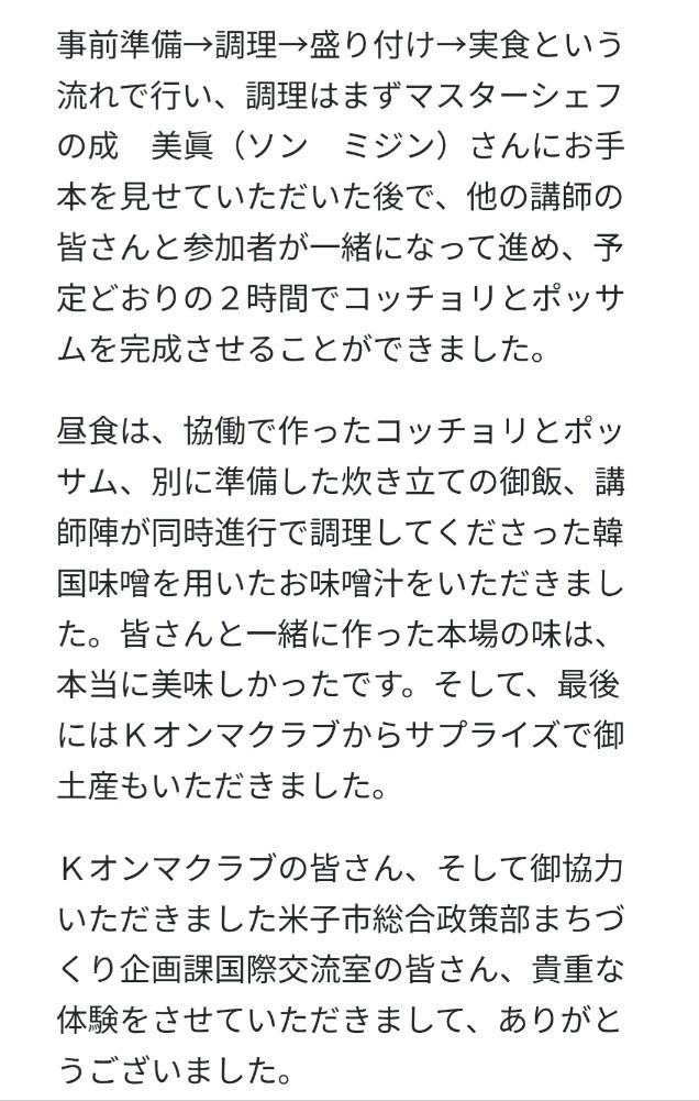 요나고 고등학교 관계자는 “성미진 명인의 요리에는 기술 이상의 진심이 담겨 있다”며 “K-UMMA CLUB과의 교류가 요나고시의 국제적 역량을 강화하는 귀중한 자산이 되었다”고 사의를 표했다.