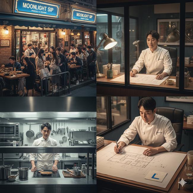 김철수는 가게 한편에 작은 사무실을 얻었다. 그는 '달빛한잔' 2호점의 도면을 직접 그리고 있었다.