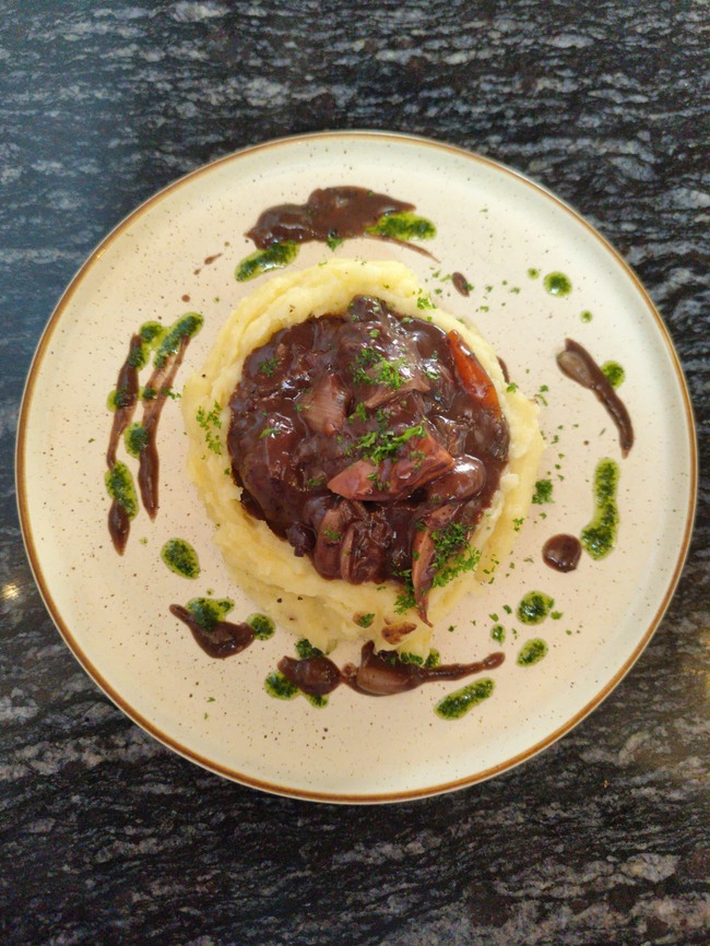 버터 풍미의 매시드 포테이토와 함께 즐기는 정통 프랑스식 컴포트 푸드입니다.