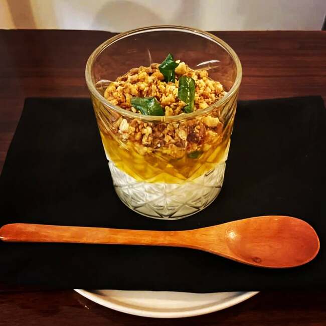 신선한 망고·바질 젤리·오렌지 크럼블을 곁들여 달콤함·신선함·식감의 조화가 완벽한 베트남-프렌치 스타일 디저트입니다.