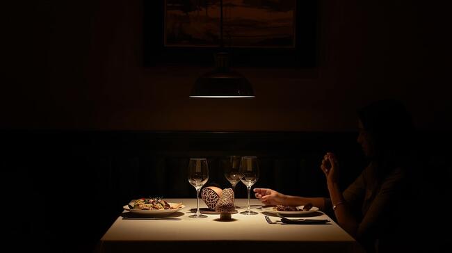 손님의 머리 위에서 빛이 쏟아지면 얼굴에 짙은 그림자가 생기고 눈이 피로해집니다. 조명의 주인공은 손님의 머리카락이 아니라 '접시 위의 음식'이어야 합니다. 빛의 초점을 테이블 중앙으로 모으십시오.