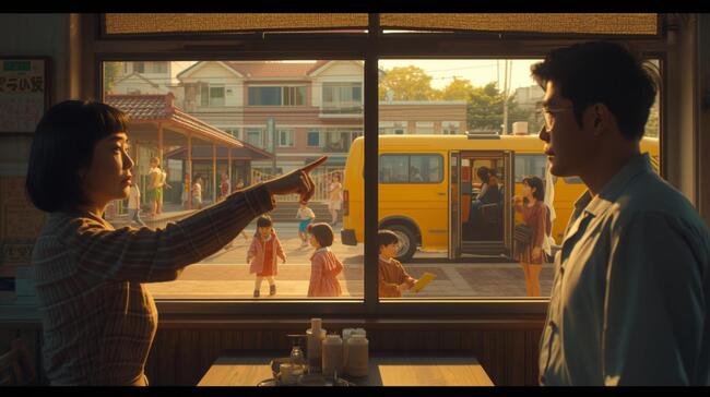 그녀는 턱짓으로 창밖을 가리켰다. 아파트 단지 놀이터에서 아이들이 뛰놀고, 유치원 버스가 아이들을 내려주고 있었다.