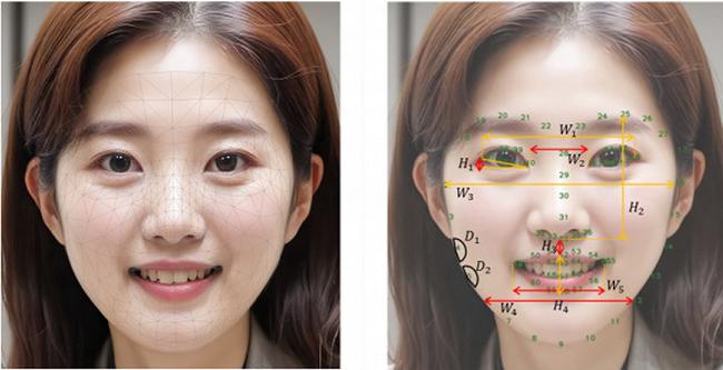 LG생활건강 R&I(Research&Innovation) 연구 부문은 이번 연구를 위해 20~60대 한국인 여성 약 1만6000명의 고해상도 얼굴 이미지를 확보하고, ‘안면 특징점 추출 기술(Facial Landmark Detection)’을 적용해 얼굴상 68개의 특징점을 분석했다. AI를 활용해 육안으로 구분하기 힘든 얼굴 구조의 미세한 변화를 추적하며 눈꼬리 처짐, 입술 비율, 얼굴 윤곽 등 연령대별 6가지 노화 지표를 정량화했다.