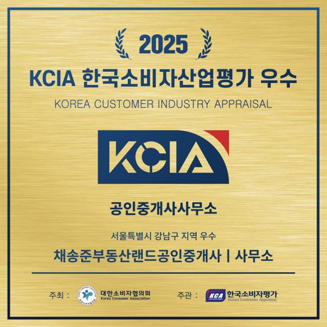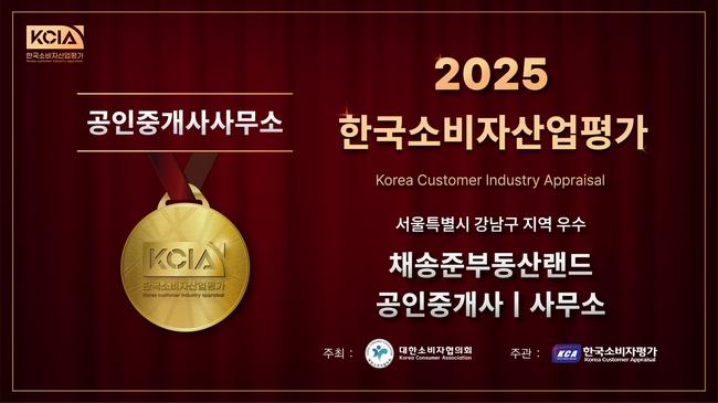 지난 11월 3일서울 강남구, 대한민국 부동산 시장의 심장이라 불리는 이 지역에서 ‘채송준부동산랜드공인중개사사무소(대표 채송준)’가 2025년 KCIA 한국소비자산업평가(Korea Customer Industry Appraisal)에서 부동산중개 부문 우수업체로 선정되었다.