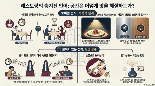 미식 해설가라면, 음악의 장르를 넘어 '템포'와 '소음 레벨'이 레스토랑의 브랜딩 목표와 어떻게 일치하는지를 읽어내야 합니다. '빨리 회전시켜야 하는가?' 아니면 '오래 머물게 해야 하는가?' 음악은 그 대답을 가장 솔직하게 들려줍니다.