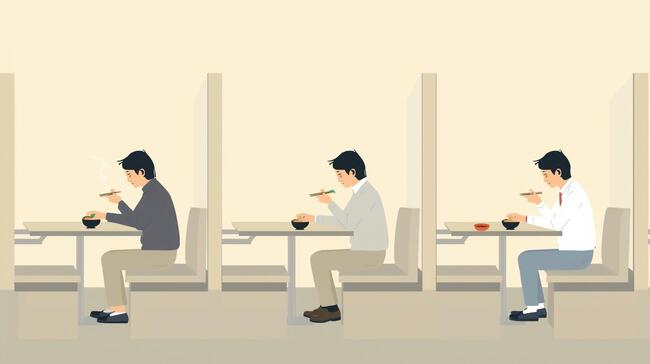 자, 이제 시선을 돌려 점심시간의 여의도나 광화문 국밥집, 혹은 일본 도쿄의 유명 라멘집으로 가봅시다. 풍경은 180도 달라집니다. 테이블은 다닥다닥 붙어 있고, 등받이 없는 의자가 놓여있기 일쑤입니다. 옆 사람과 팔꿈치가 부딪힐까 조심해야 하고, 그들의 깍두기 씹는 소리가 ASMR처럼 들릴 지경입니다. 이곳에서 에드워드 홀의 ‘사적 영역’은 사치에 가깝습니다.