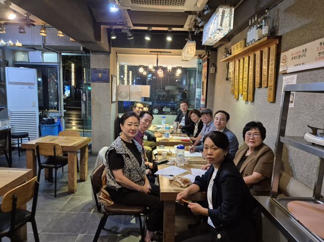 이날 회의에는 안형상 이사장, 주정자 부이사장, 방선배 위원장, 윤병세 대표, 조용철 대표, 김문경 대표, 최기홍 대표, 김혜숙 교수 등 (사)한국외식창업교육원의 핵심 인사들이 총출동했다. 각계의 조리 명인·명장과 학계 전문가가 함께 머리를 맞댄 이 모임은 그 자체로도 한국 외식문화의 깊이를 보여주는 장관이었다.