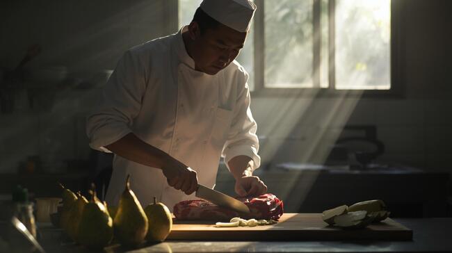 그것은 공장에서 기계가 고기를 찍어내는 소리가 아니었다. 묵직한 칼이 단단한 뼈에 부딪히는 둔탁한 소리, 날카로운 칼날이 근막을 따라 부드럽게 미끄러지는 소리. 마치 숙련된 외과 의사가 수술을 집도하듯, 절제되고 규칙적인 소리였다. 나는 홀린 듯 가게 뒷문 창문에 바짝 붙어 안을 엿보았다.